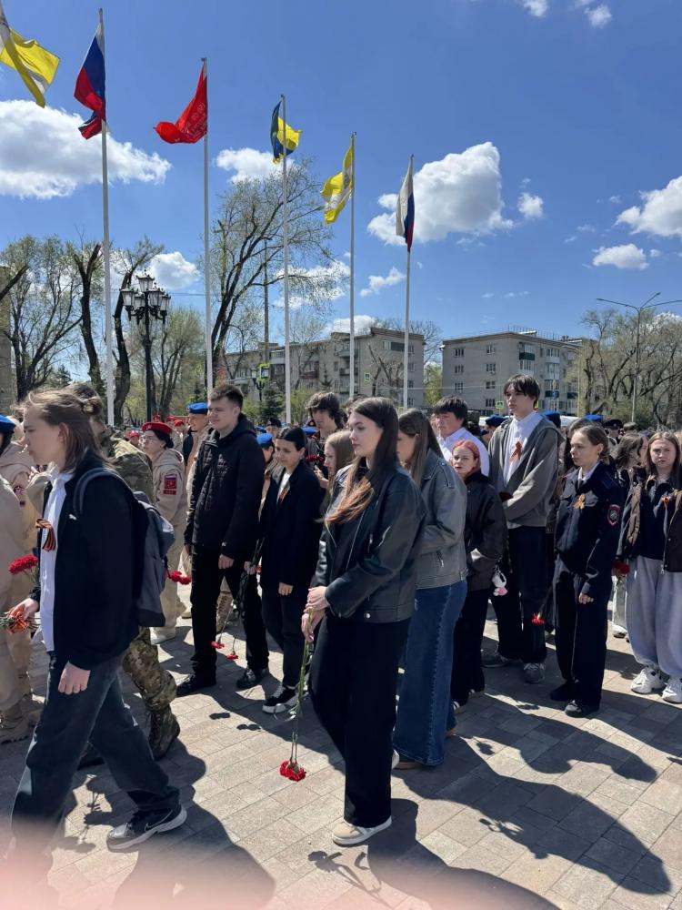 В завершение встречи студенты института почтили память защитников Родины и возложили цветы к Вечному огню.